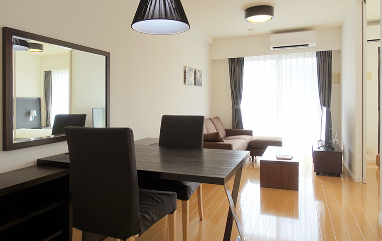 | 設備 | オートロック、防犯カメラ、TVモニター付インターホン、エアコン、洗濯乾燥機、ソファー、ベッド、レンジ、冷蔵庫、掃除機、テレビ、テーブル、インターネット無料 |